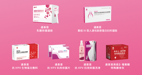 除了亚麻籽油微囊粉系列,遇善恩还针对不同人群推出多款产品。在女性健康领域,抗HPV生物蛋白敷料作为二类医疗器械,帮助降低局部病毒载量;重组Ⅲ型人源化胶原蛋白妇科凝胶则通过物理屏障,助力女性从被动治疗走向主动防护。面向儿童,γ-氨基丁酸酸枣仁骨胶原蛋白肽饮采用双重钙源,搭配小分子骨胶原蛋白肽与γ-氨基丁酸、酸枣仁,助力生长发育;DHA藻油凝胶糖果聚焦大脑与视力发育关键期。此外,还有覆盖全人群的益畅复合益生菌,为孕产妈妈、上班族、老年人带去肠道活力。